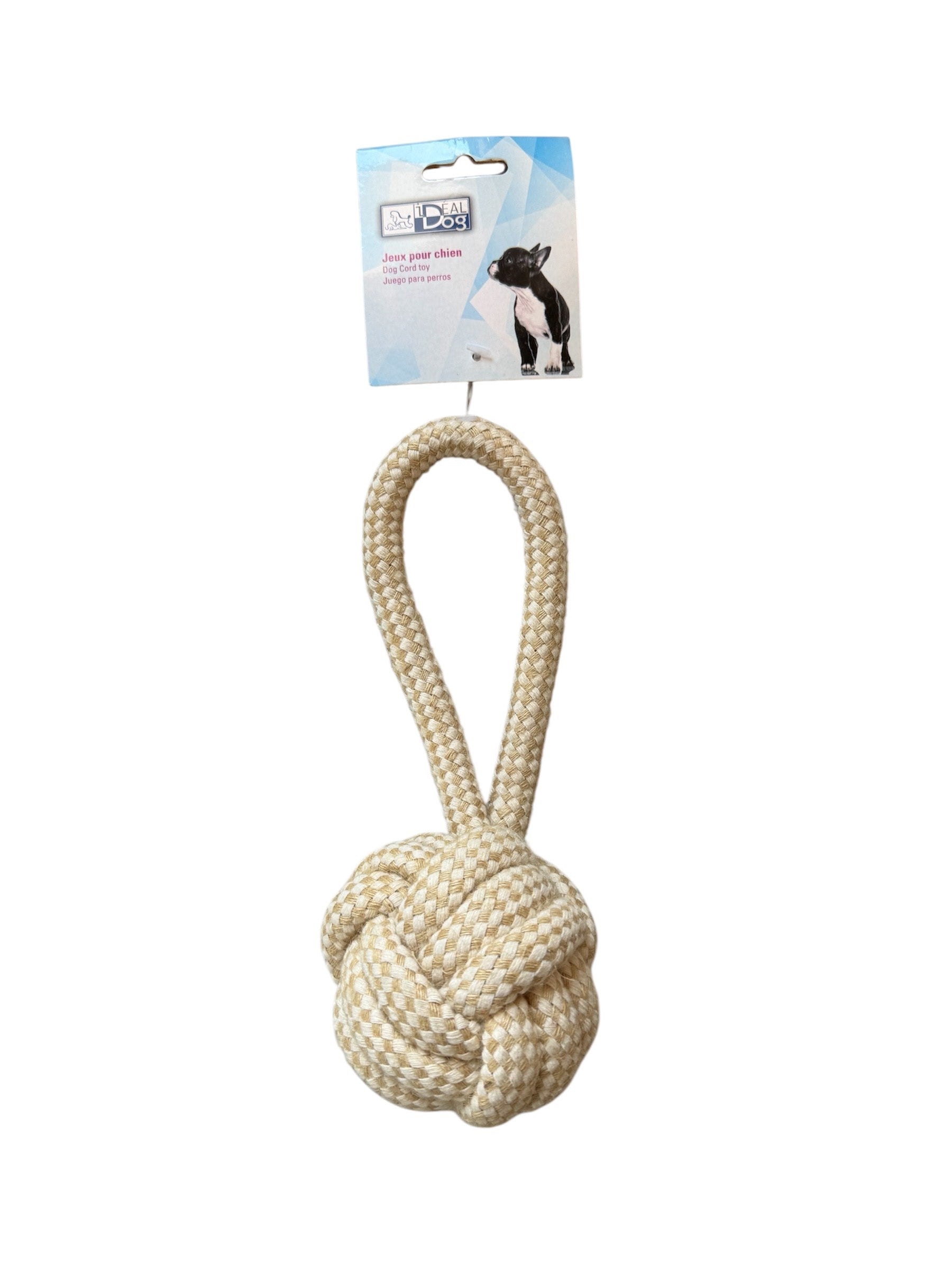 Denna repboll med handtag är den perfekta leksaken för aktiva hundar som älskar att springa, dra och tugga. Med sin slitstarka design och praktiska form ger den både rolig lek och bidrar till god tandhälsa.