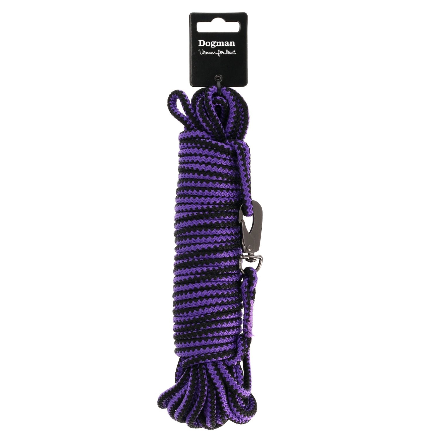 Praktisk flätad spårlina med karbinhake. Perfekt att använda vid motionsträning, spår- och inkallningsövningar av olika slag.