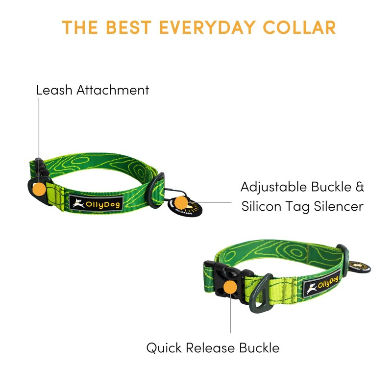 OllyDog Flagstaff halsband är ett bekvämt och slitstarkt hundhalsband för dagligt bruk. Utrustat med ett praktiskt snabbspänne, stark aluminium D-ring och tillverkat i tåligt, tvättbart material. Lätt, smidigt och enkelt att hålla rent.